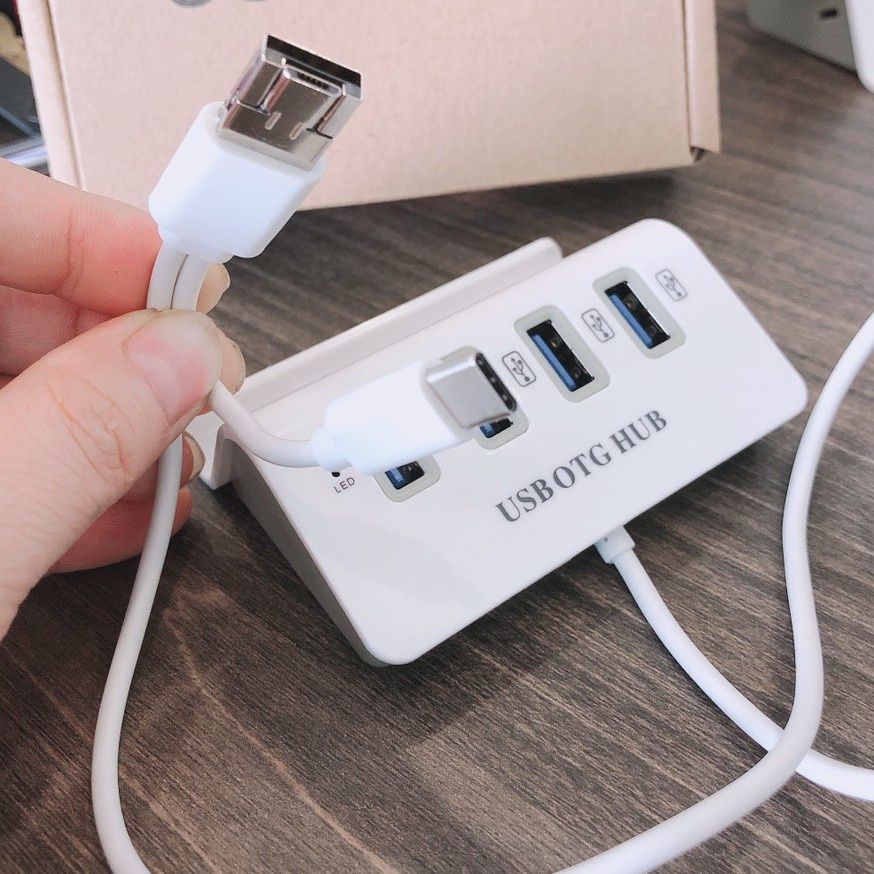 Sử Dụng với Điện Thoại hoặc Máy Tính Bảng: Đảm bảo thiết bị của bạn hỗ trợ OTG. Cắm bộ chia vào cổng USB hoặc cổng sạc của thiết bị di động, sau đó kết nối các thiết bị ngoại vi.