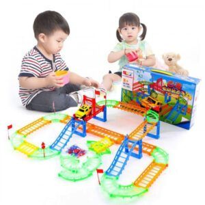 Bộ đồ chơi lắp ráp đường ray cho ô tô chạy vòng bên trên với nhiều chi tiết nhỏ được tháo rời, và việc mà các bé phải làm chính là nhận biết, và lắp ráp lại thành một sản phẩm theo hướng dẫn để chiếc ô tô đồ chơi có thể chạy được trên đường ray này.