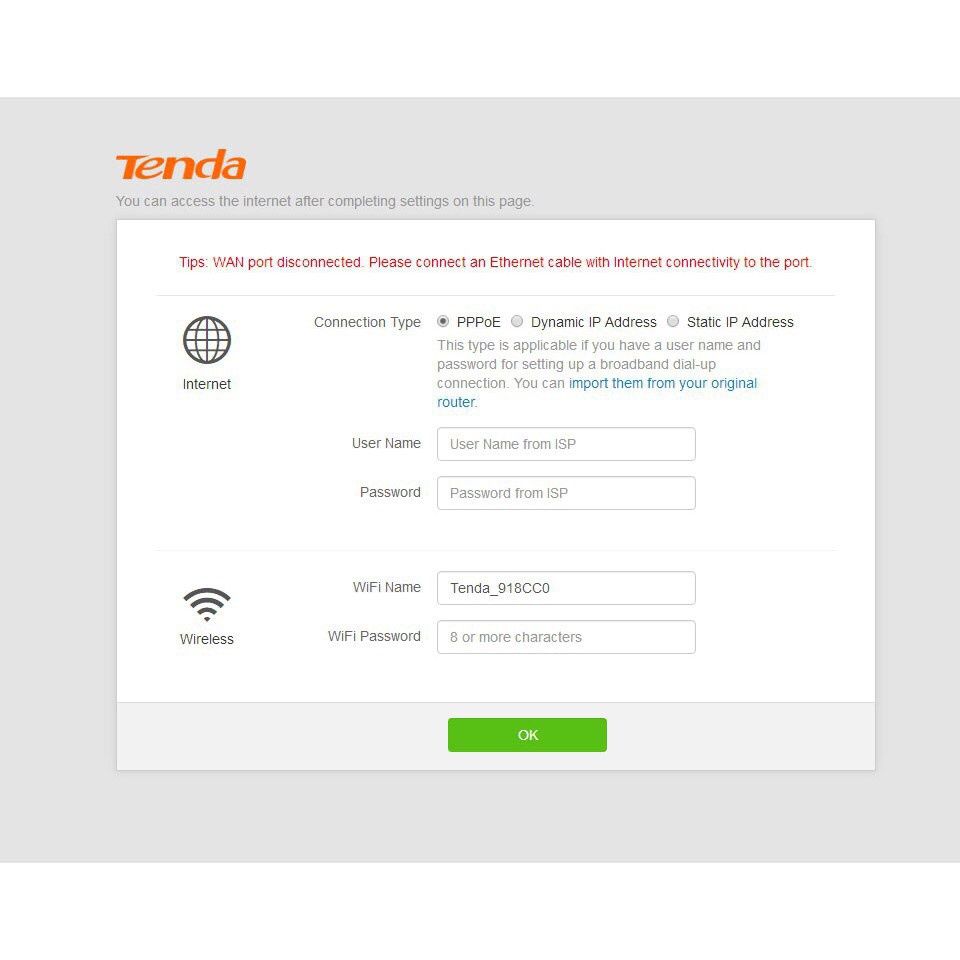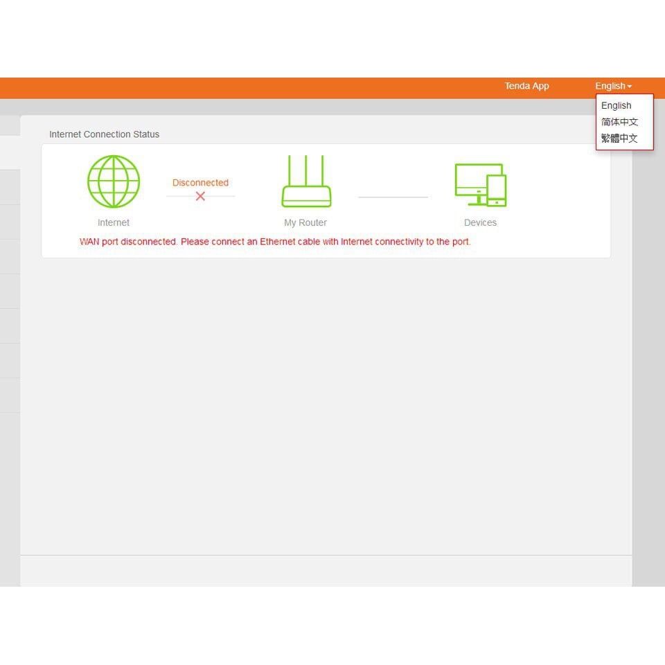 Giao diện Tenda, ngôn ngữ mặc định tiếng Trung.Có lô về cả bản tiếng anh