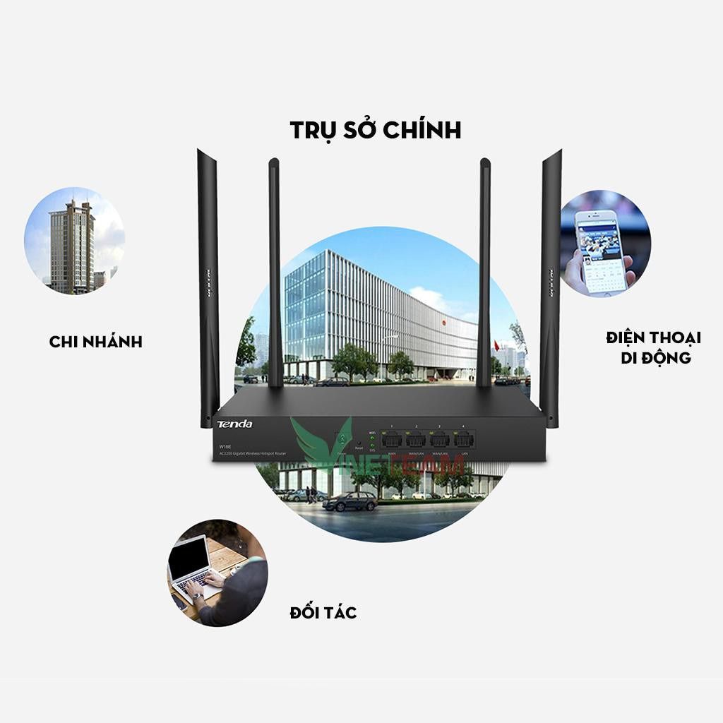 Bộ phát WIFI Tenda W18e GIGABIT ac1200Mps mạng doanh nghiệp 80 user - vùng phủ sóng