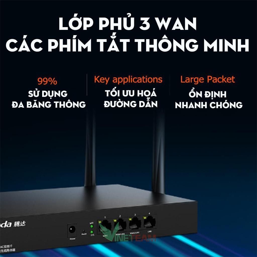 Cân bằng tải đa WAN với 3 cỏng WAN GIGABIT 1000Mbps( 1 WAN +2 WAN/LAN) và 1 cổng LAN.