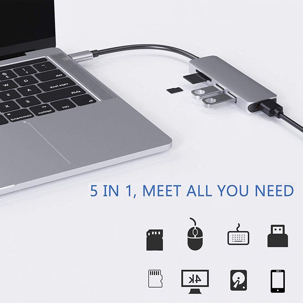 Cáp chuyển đổi từ TypeC sang HDMI 5 IN 1 Adapter USB 3.0 đầu đọc thẻ nhớ Type-c to HDMI hub typec