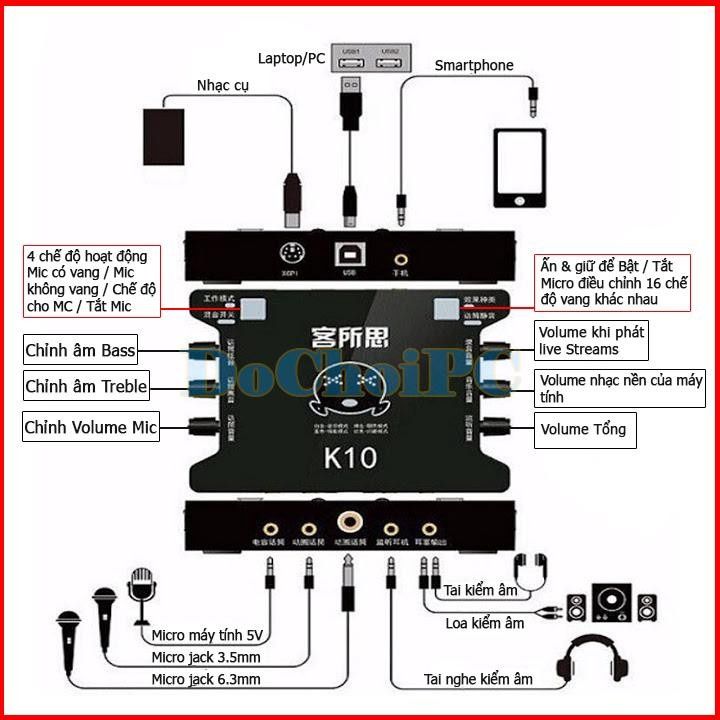 Âm thanh chất lượng cao (24-bit), kết nối trực tiếp với máy tính qua máy tính qua cổng USB.XOX K10được thiết kế chuyên dụng chohát karaoke online.