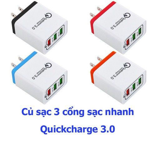 Củ Sạc Nhanh Quick Charge 3.0 công suất 18w ba cổng Cốc Sạc Nhanh