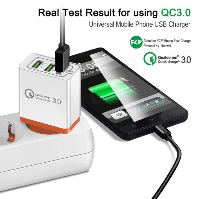 Củ sạc nhanh có công suất 18w ba cổng Qualcomm 3.0 Cốc Sạc Nhanh, Củ Sạc Cho Iphone, Samsung, Oppo