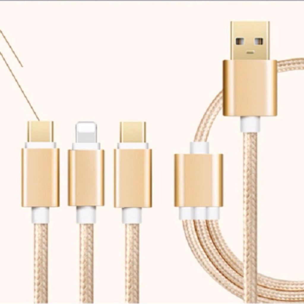 💥 Tên sản phẩm: Dây sạc bọc dù 3 đầu đa năng DC1058 -dc1058