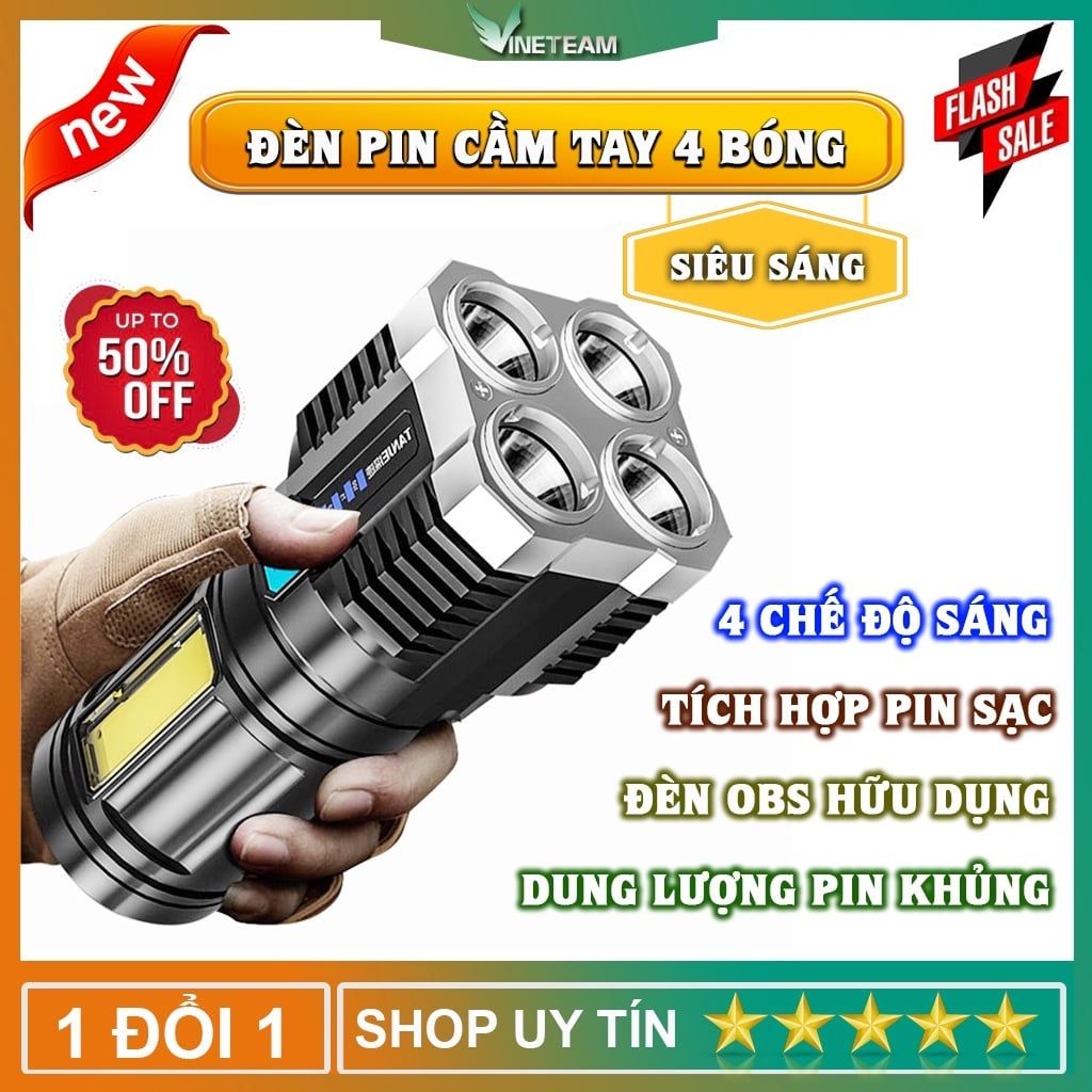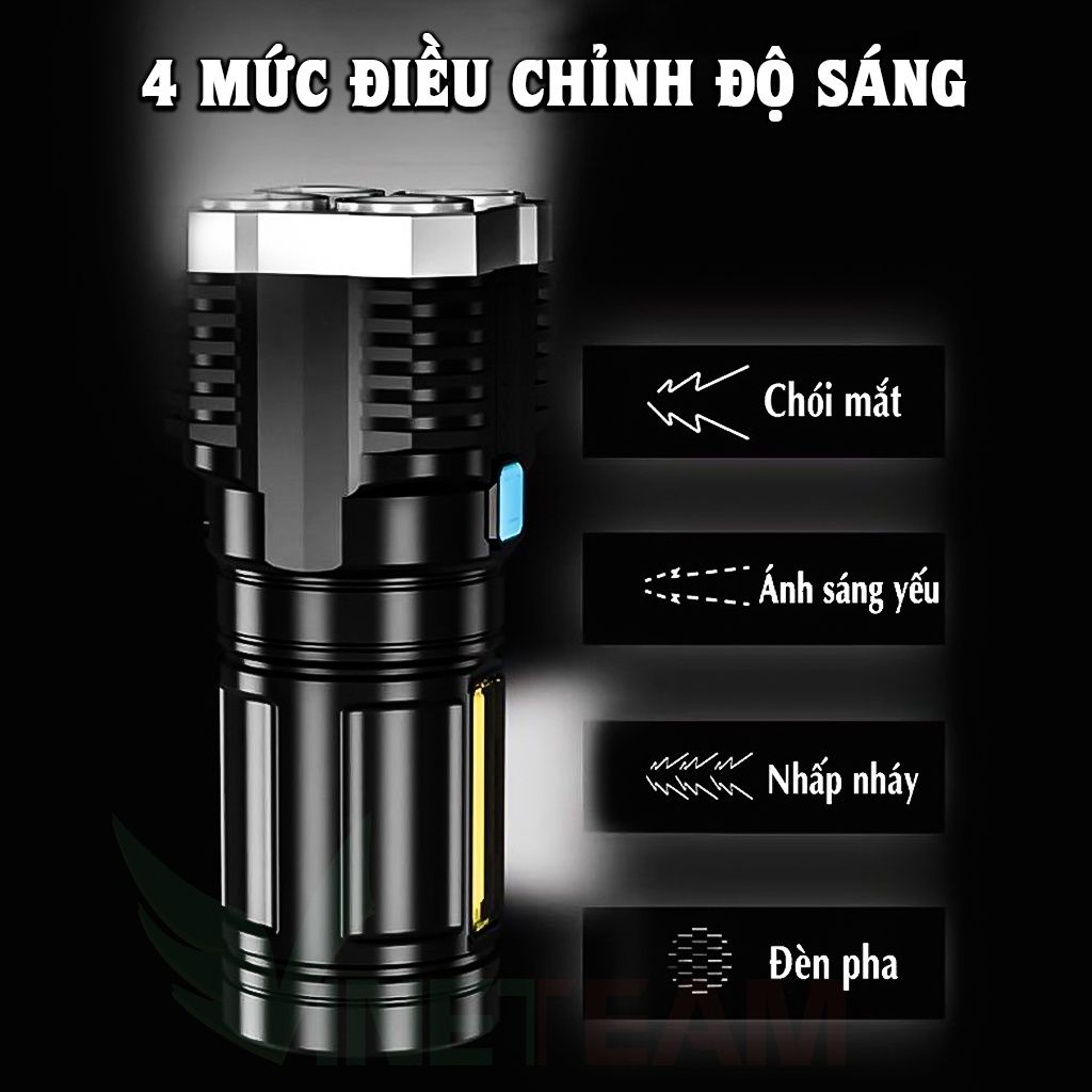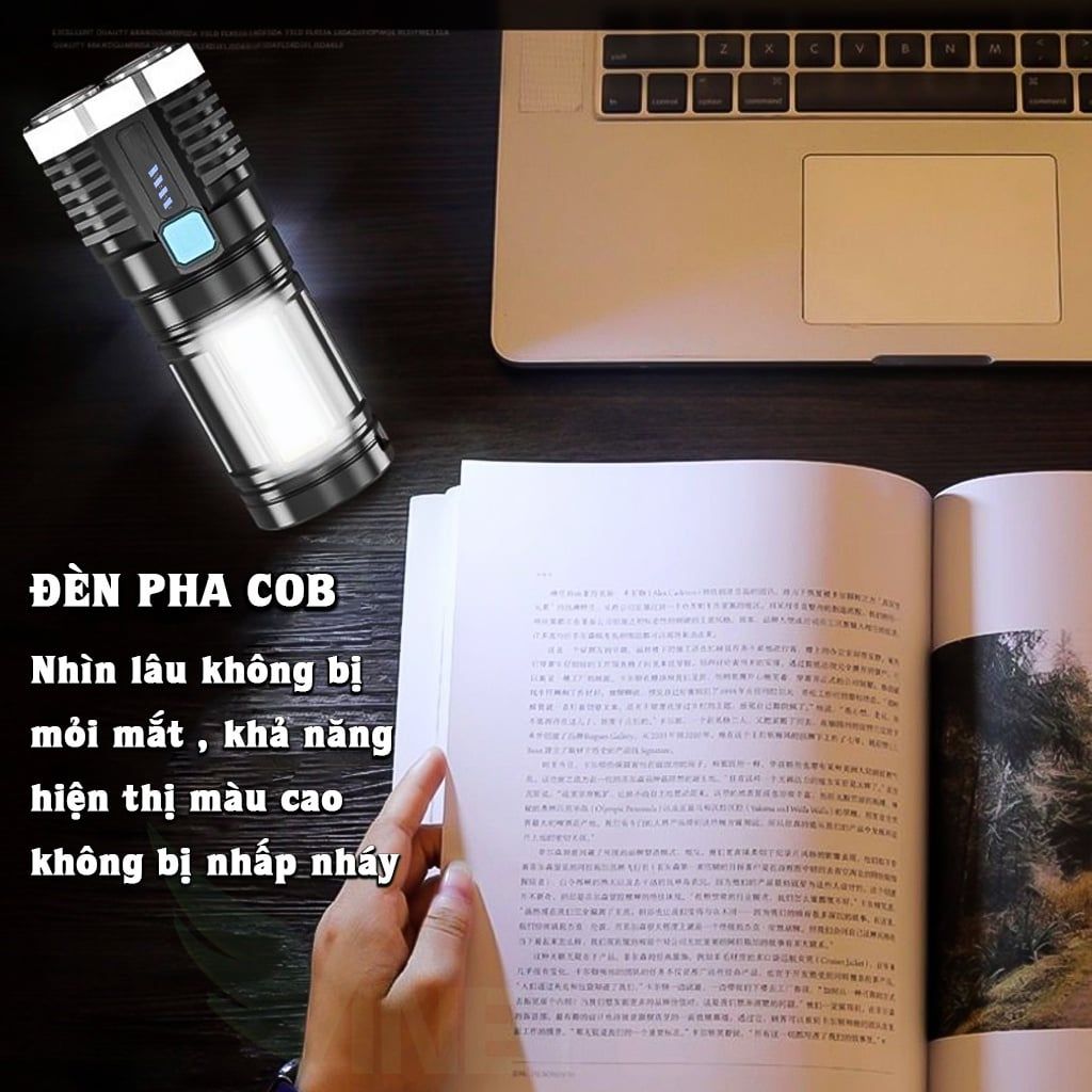 Đèn pin LED đa chức năng có thể sạc lại và nhỏ gọn để sử dụng tại nhà. Pin lithium có thể sạc lại dung lượng lớn tích hợp, nhiều phương pháp sạc USB, phạm vi dài, tuổi thọ pin dài, độ sáng cao, màn hình hiển thị điện thông minh, đèn bên sáng, thích hợp cho nguồn điện khẩn cấp khi cúp điện tại nhà. Sản phẩm cao cấp công suất lớn, chống thấm nước, đèn sáng mạnh, có thể chuyển đổi 4 cấp độ theo ý muốn [ánh sáng mạnh-trung bình-ánh sáng nhấp nháy-COB hông]