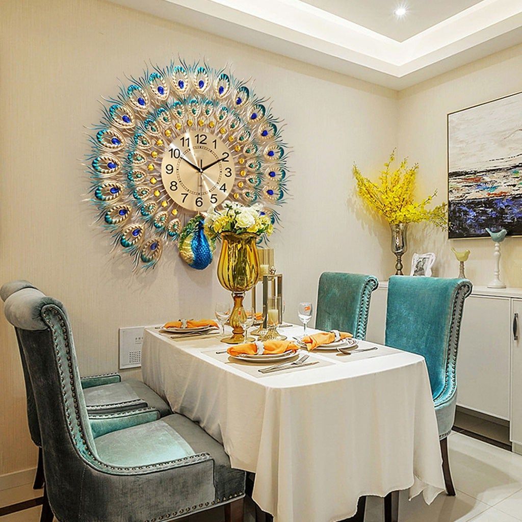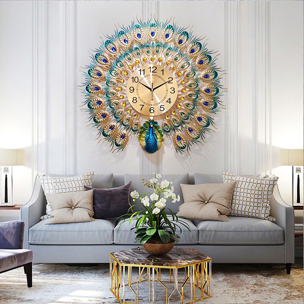 Đồng Hồ Treo Tường Chim Công Xòe Đuôi kim trôi KT 72X72CM phiên bản mới 2020 - Tặng 1 bộ kim đồng hồ và đinh thông minh