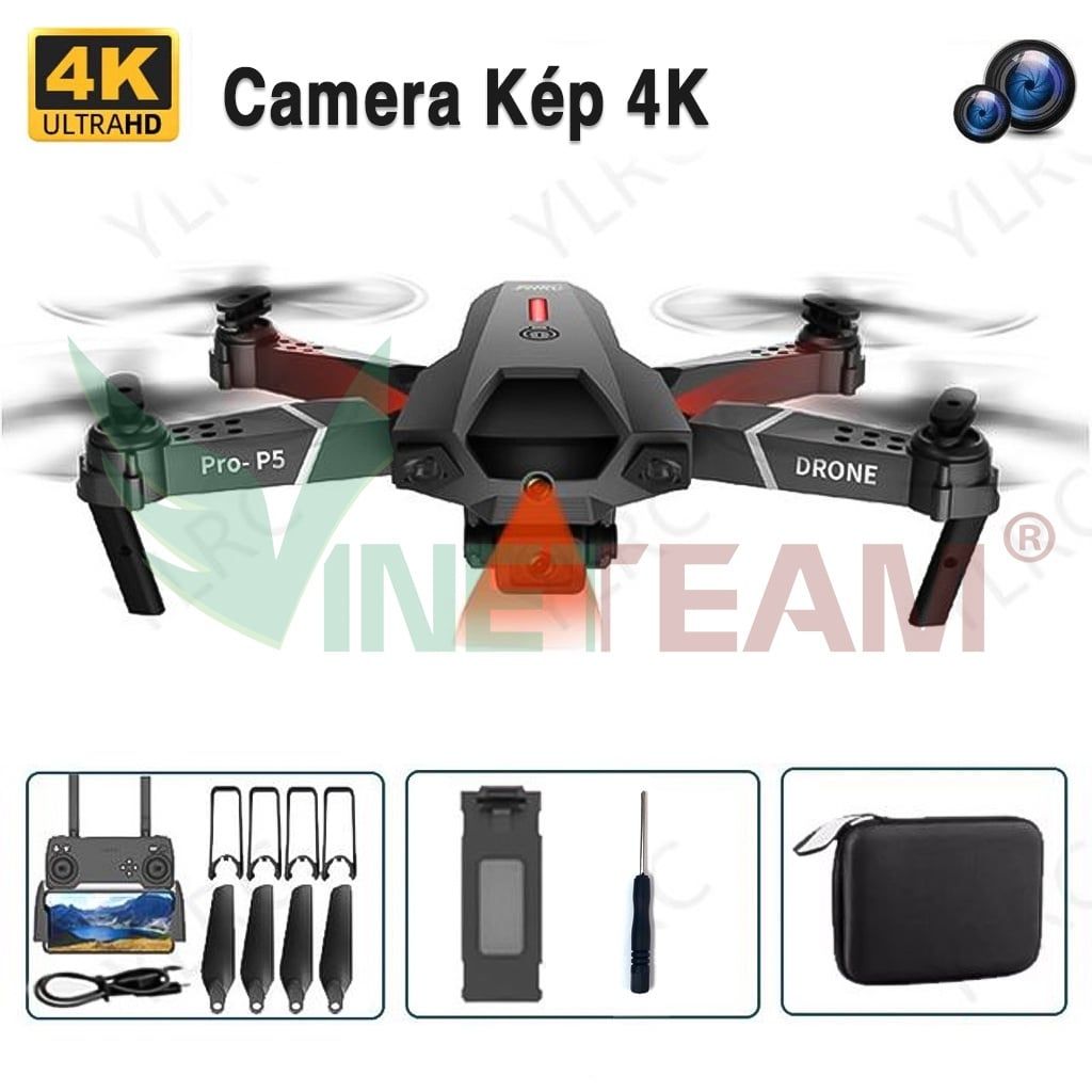 Flycam P5 Pro , Drone có camera 4k HD Camera Kép Có Định Vị 1080P WiFi Pin Khỏe Bay Xa 150M