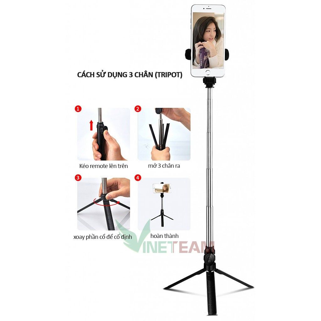 Tính năng gậy tự sướng Tripod TX-10 Linh hoạt : Một thiết bị hỗ trợ đơn giản, có thể được chia thành 2 chế độ lắp ráp khác nhau để đáp ứng nhu cầu chụp khác nhau, cụ thể là: chụp bằng camera trước và camera sau. Tính di động: Sản phẩm sử dụng một loại vật liệu mới, nhẹ và bền, chỉ lớn hơn một chút so với không gian hộp kính. Thiết kế nhẹ: sẽ không phải là gánh nặng khi đi du lịch. Dễ sử dụng: Toàn bộ quá trình rất đơn giản, kéo điện thoại thư mục clip điện thoại chèn cáp âm thanh 3.5mm vào khe cắm tai nghe để chụp ảnh. An tâm hơn: Sử dụng cáp 3,5 mm để kết nối điện thoại, không cần phải ghép nối, không cần phải sạc.
