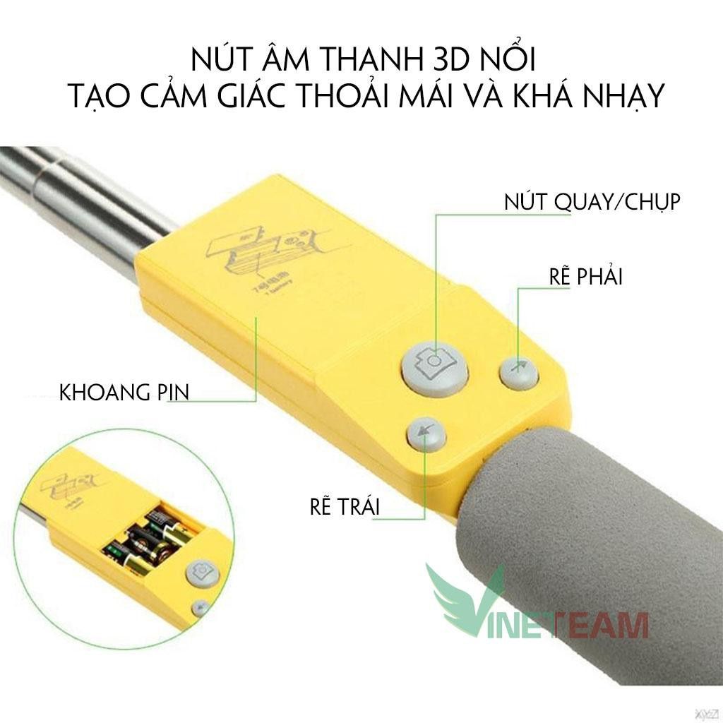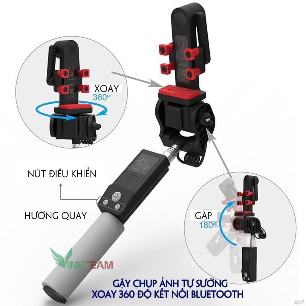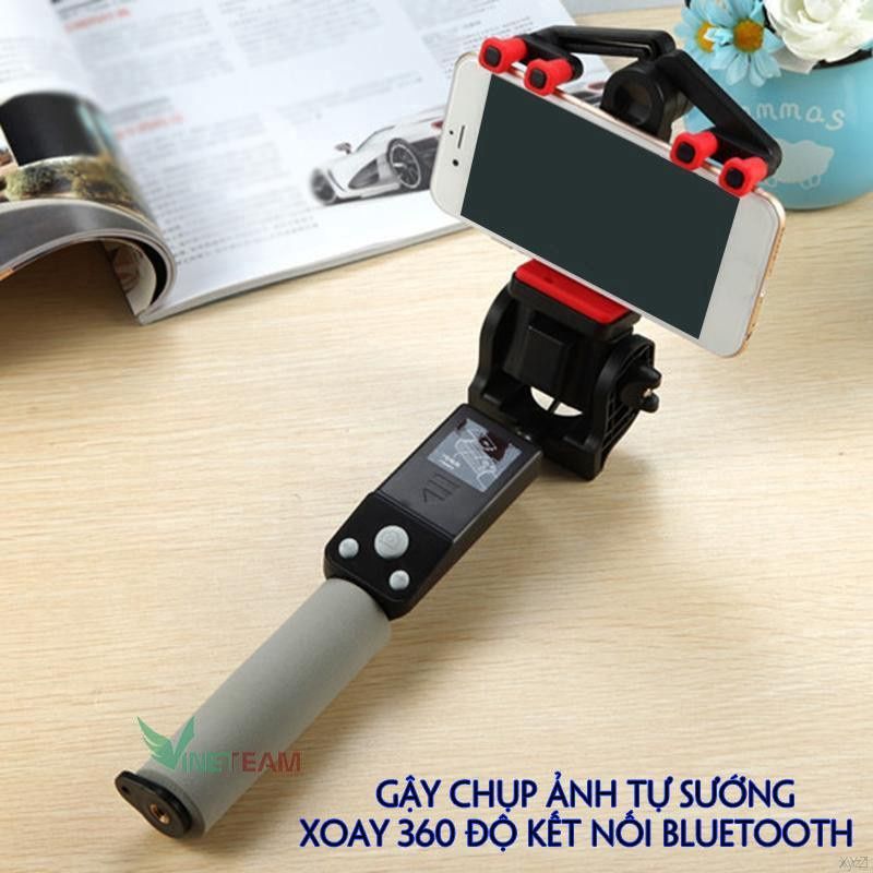 Gậy Chụp Ảnh Tự Sướng Xoay 360 Độ Kết Nối Bluetooth Cho Điện Thoại Thông Minh R1 Chụp xoay 360 độ không có góc chết, điều khiển từ xa không dây qua bluetooth, có thể chụp ảnh toàn cảnh hoặc quay video, mượt mà và tự nhiên hơn .. Kẹp điện thoại di động chắc chắn, không dễ rơi. Tay cầm làm bằng chất liệu êm tiện dụng, thoải mái khi sử dụng. Có thể Kẹp Dọc ngang điện thoại di động chắc chắn không bị rung.. Camera điều khiển từ xa Bluetooth, tương thích hoàn hảo với hệ thống IOS và hệ thống Android. Nút nhấn nổi 3D, độ nhạy cao. Thiết kế có thêm 1 miếng gương có thể soi , thiết thực và tiện lợi .. Thanh kéo làm bằng thép không gỉ, thiết kế rãnh, không quay, kéo dài chiều dài tối đa 90 cm .. ===================== Mô tả Gậy Chụp Ảnh Tự Sướng Xoay 360 R1 Loại sản phẩm: Gậy selfie Màu sắc: Đen Trọng lượng: 250g Kích thước: 75*70*250mm Chiều dài tối đa: 90 cm Góc quay: 360 độ Ứng dụng: IOS 4.0 Android 2.3 + Sử dụng:chụp ảnh +quay video Tải trọng tối đa: 500g Điều khiển từ xa: Bluetooth 4.0 Chất liệu: Nhựa abs + thép không gỉ ===================== Bộ sản phẩm bao gồm : 1 * Gậy Chụp Ảnh Tự Sướng Xoay 360 R1 1 * túi vải Kết nối Nhấn nút hẹn giờ 3-5 giây, đèn xanh lam nhấp nháy, bạn có thể tìm kiếm tín hiệu Bluetooth. Mở điện thoại Bluetooth, tìm kiếm R1 để ghép nối Bạn muốn xoay trái phải thì nhấn giữ nút mũi tên trái phải nó sẽ quay Năm phút nếu ghép nối Bluetooth không thành công, sau đó vào trạng thái không hoạt động, đèn xanh sẽ tắt. =====================
