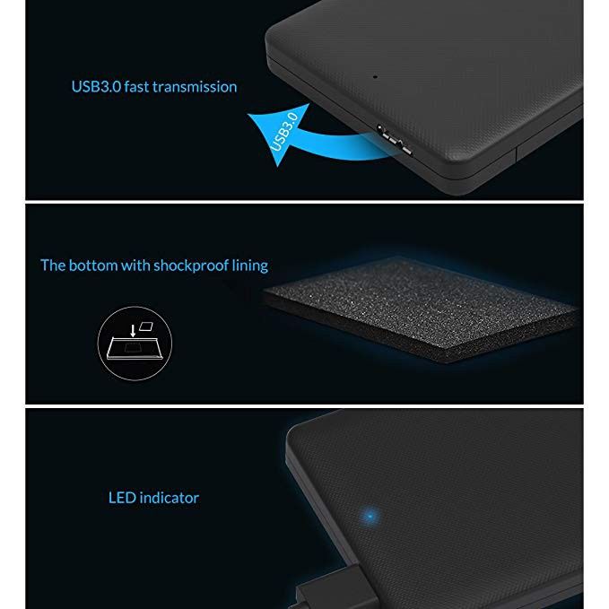 Thiết kế độc quyền: Free Enclosure từ Orico Mount Drive giúp tháo ráp trong 3 giây mà không cần công cụ và ốc vít Super Speed USB3.0: cho tốc độ lên đến 5Gbps, nhanh hơn 10 lần USB2.0 Đổi mới thiết kế với chất liệu nhựa ABS được phủ thêm 1 lớp cao su dầu để cải thiện độ đàn hồi và tính linh hoạt Hỗ trợ ổ cứng HDD và SSD 9.5mm Fit Slim 2,5 inch SATA I, SATA II và SATA III Plug and Play, không cần nguồn phụ, Adapter hoặc Driver Giới thiệu sản phẩm Box HDD 2.5" USB 3.0 Orico 2577U3 Giới thiệu sản phẩm: Vở đựng ổ cứng HDD BOX 2.5'' Orico 2577U3 là một sản phẩm mới với giao tiếp chuẩn USB 3.0 của hãng Orico,BOX SATA này có thể được sử dụng cho tất các ổ cứng 2.5 inch ngoài thị trường. Khách hàng có thể sử dụng giao diện USB3.0 siêu tốc để lưu trữ các dữ liệu mà họ cần, Với chuẩn 3.0 tốc độ truyền cao nhất đến 5 Gb/s. Nó cũng tương thích ngược với USB 2.0 & 1.1, nếu hệ thống phần cứng của bạn không có cổng USB3.0, Orico 2599US3 có thiết kế vỏ màu đen, bề mặt là chất liệu vẽ kim loại nhôm, không chỉ thời trang mà còn có thể thúc đẩy phát xạ của HDD. Phía mặt trước có một đèn LED giúp bạn có thể biết trạng thái ổ cứng đang làm việc hay không. TÍNH NĂNG NỔI BẬT 1. Áp dụng cho bất kỳ 2.5'' SATA SSD hoặc HDD. 2. Supper giao diện tốc độ USB3.0, truyền tốc độ đến nơi đến 5Gb / S. 3. Backward để tương thích với USB2.0 & USB1.1, USB 2.0 tốc độ truyền cao nhất có thể đạt tới 480Mb / s. 4. Hỗ trợ PC & Mac. 5. cắm USB và chơi, không cần phải khởi động lại máy tính. 6. thiết kế lắp đặt công cụ miễn phí, không cần bất kỳ công cụ để cài đặt HDD. 7. nhôm hợp kim bề mặt vật liệu vẽ, thúc đẩy HDD tỏa chức năng, phong cách thời trang. 8. xanh đèn LED ánh sáng & HDD truy cập cho thấy ánh sáng, ánh sáng mềm mại sẽ không được khắc nghiệt trong môi trường tối. 9. đính kèm chiếc áo khoác da tinh tế để tránh cào, cung cấp bảo vệ nhiều hơn cho việc bên ngoài. 10. Attached "DC để USB Một loại" dây cáp điện cho công suất lớn sử dụng HDD .: - Hoạt động trên HĐH: Windows và MAC OS. - Trọng lượng: 90g (Không bao gồm ổ cứng) Phụ kiện 1 x ORICO 25AU3 USB 3.0 HDD #orico #hddbox
