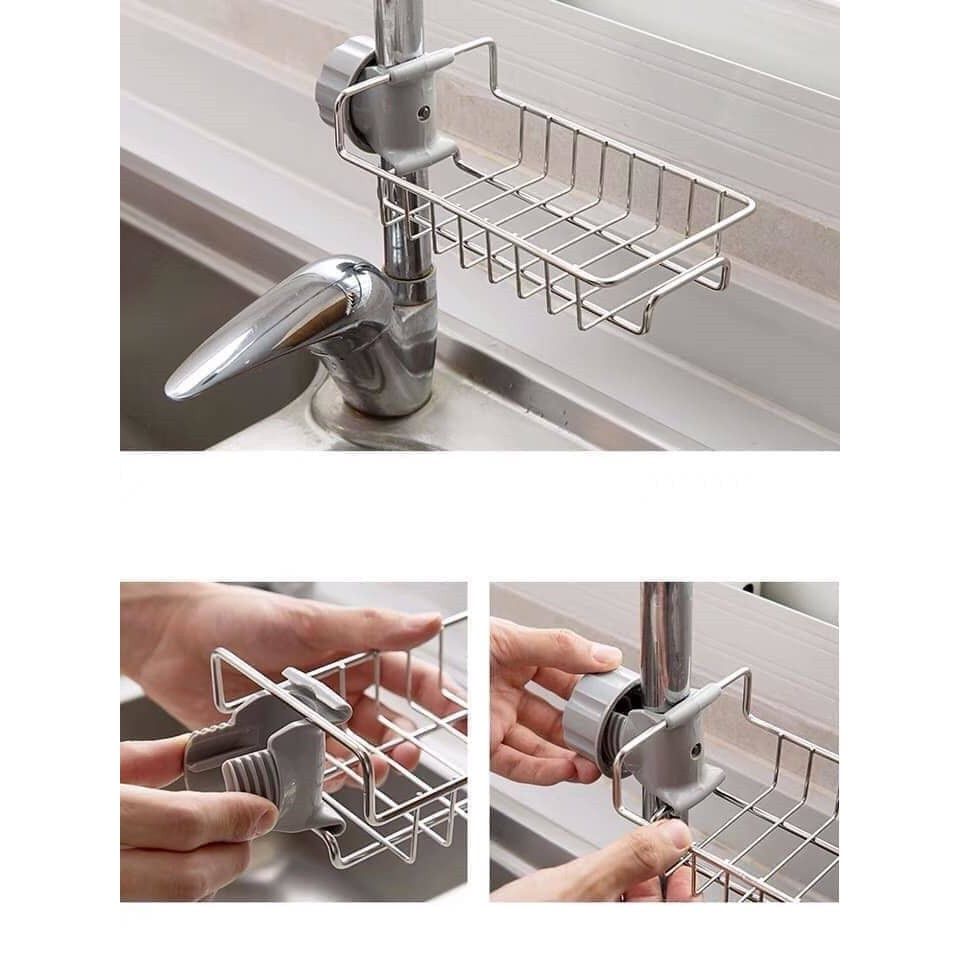 Kệ Gắn Vòi Sen INOX Đa Năng - Đựng Đồ Rửa Bát, Giá Treo Khăn