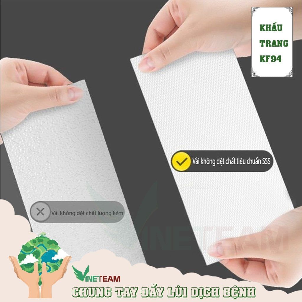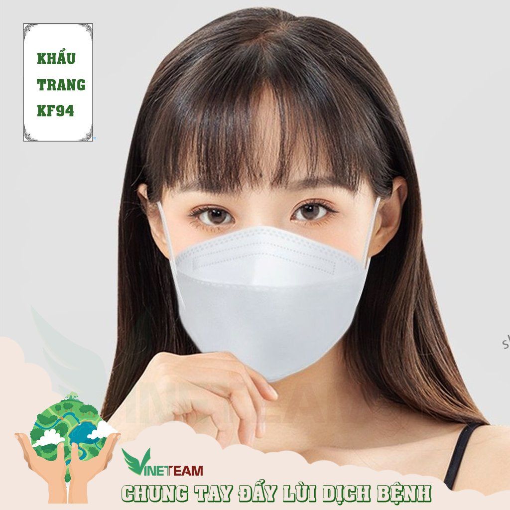 3. Thông tin sản phẩm + Khẩu trang KF94 sử dụng công nghệ hút tĩnh điện có khả năng lọc được 95% các hạt có kích thước siêu nhỏ đến 0.3μm. + Để đạt hiểu quả cao nhất trong việc lọc bụi mịn thì cách đeo khẩu trang và thiết kế của khẩu trang là rất quan trọng. Khi đeo cần để khẩu trang phủ kín hoàn toàn mũi và cằm, điều chỉnh kẹp mũi sao cho viền khẩu trang ôm khít khuôn mặt. + Phần thân được làm từ Polyester và vải lọc, có cấu trúc đa lớp giúp ngăn khói, bụi, phấn hoa, vi khuẩn xâm nhập phòng chống các dịch bệnh nguy hiểm lây qua đường hô hấp. + Được thiết kế để vừa với mọi khuôn mặt, thoáng khí không tiếp xúc trực tiếp với miệng