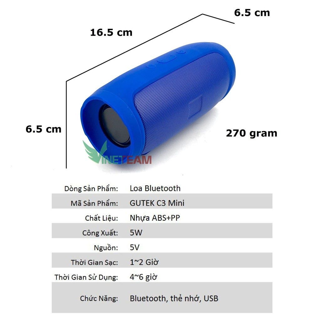 - Ngoài kết nối bluetooth, loa bluetooth không dây Charge 3 Mini còn có thêm 2 cổng thẻ nhớ và USB. Với trang bị cổng thẻ nhớ TF, cổng USB trên thân loa giúp loa có thể tích hợp thẻ nhớ và USB phát nhạc một cách dễ dang.