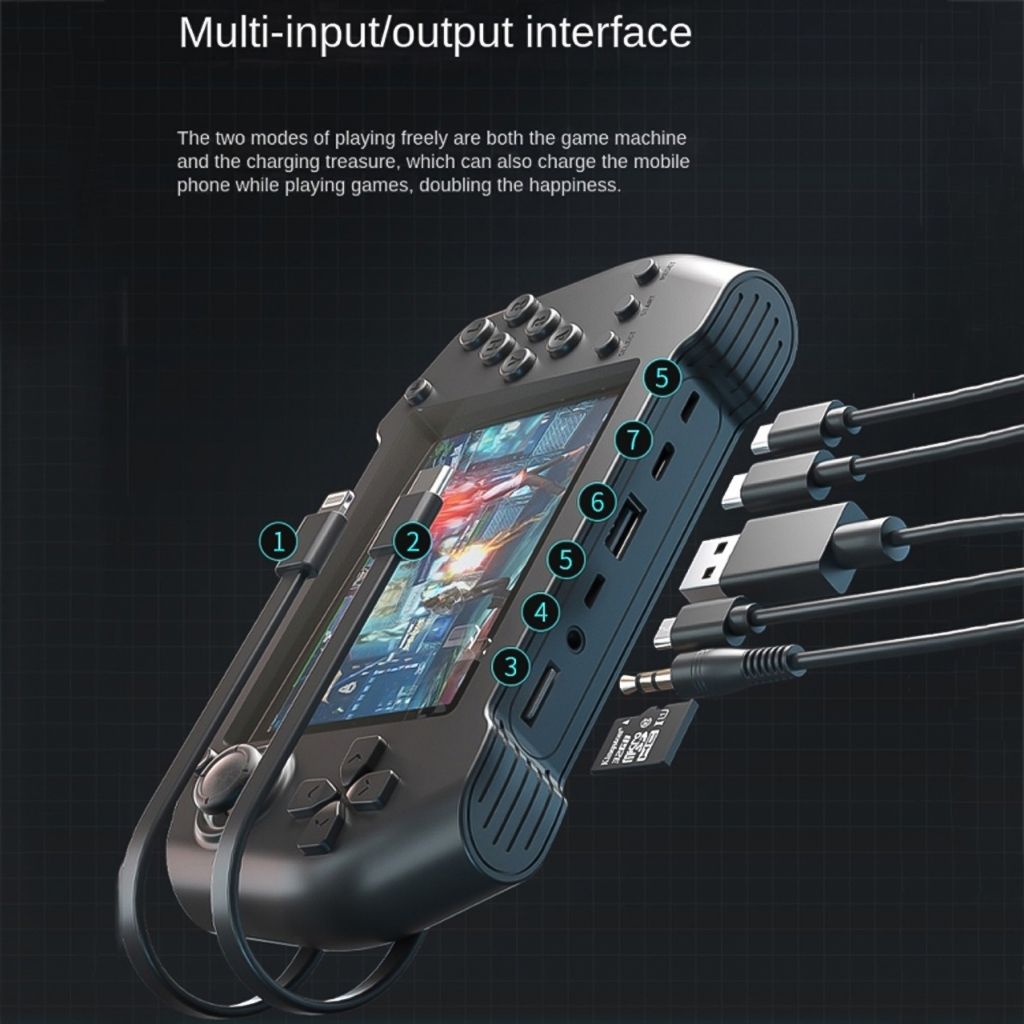 Chế độ chơi đa năng: Bạn có thể chơi trò chơi và sạc dự phòng đồng thời, mang lại trải nghiệm tiện ích và linh hoạt. Pin dung lượng cao: Với pin 10000mAh, giúp bạn sử dụng thiết bị lâu dài mà không cần lo lắng về việc hết pin. Đa kết nối: Kèm theo cáp sạc kép và nhiều cổng vào và ra, cho phép sạc nhiều thiết bị cùng một lúc một cách thuận tiện. Kết nối với TV: Hỗ trợ kết nối cáp AV để truyền hình ảnh trò chơi lên màn hình TV, tạo ra trải nghiệm game đa chiều và thú vị. Hơn 10.000 trò chơi: Bao gồm hơn 10.000 trò chơi điện tử tích hợp sẵn, đem lại những kỷ niệm thú vị từ tuổi thơ. Màn hình màu sắc sáng: Màn hình màu 3,5 inch mềm mại thân thiện với mắt, giúp bạn chơi game một cách rõ ràng mà không gây mỏi mắt. Chức năng tải game tích hợp: Cho phép bạn tự tải game, lưu file và trải nghiệm trò chơi theo ý muốn. Hỗ trợ nhiều trình mô phỏng: Hỗ trợ mười trình mô phỏng hàng đầu và nhiều loại trò chơi từ arcade đến FC và nhiều thể loại khác. Hiệu năng vượt trội: Chip chơi game hàng đầu, đảm bảo hiệu năng gấp đôi, mang lại trải nghiệm chơi game mượt mà và không giật lag. Hỗ trợ điều khiển kép: Kết nối bộ điều khiển trò chơi kép, giúp bạn chơi qua các cấp độ với bạn bè và trẻ em, tạo ra những kỷ niệm vui vẻ. Thông số Kỹ Thuật: