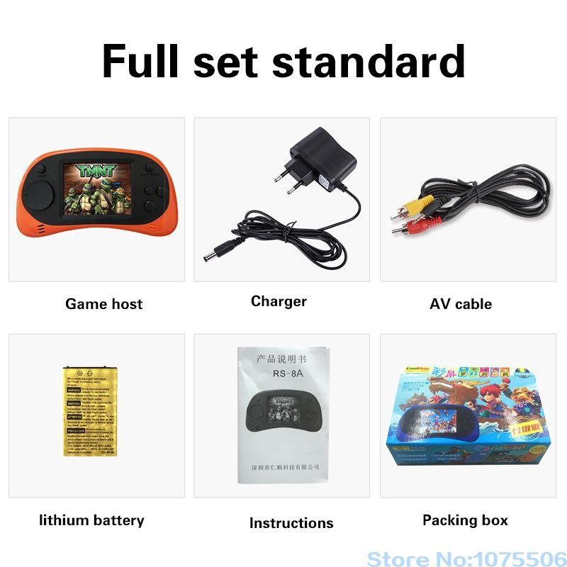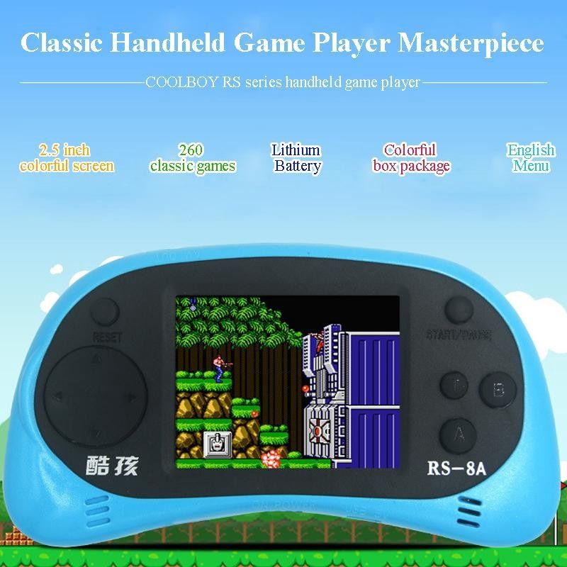 Máy chơi Game dùng pin RS8 * Thiết kế đẹp đễ cầm và sử dụng * Vật liệu ABS cứng khỏe và an toàn * Rất nhiều trò chơi hấp dẫn và thú vị, nâng cao trí thông minh của trẻ (đã nâng cấp lên 260 trong 1) * Màn hình rộng 2.5 inch * Pin khỏe chơi trong nhiều giờ mới phải sạc * Hỗ trợ đầu ra AV ra màn hình lớn như TV, màn hình máy tính,... * Chơi game giải trí không giới hạn giúp bạn chơi game như chính chơi trò chơi của cuộc sống