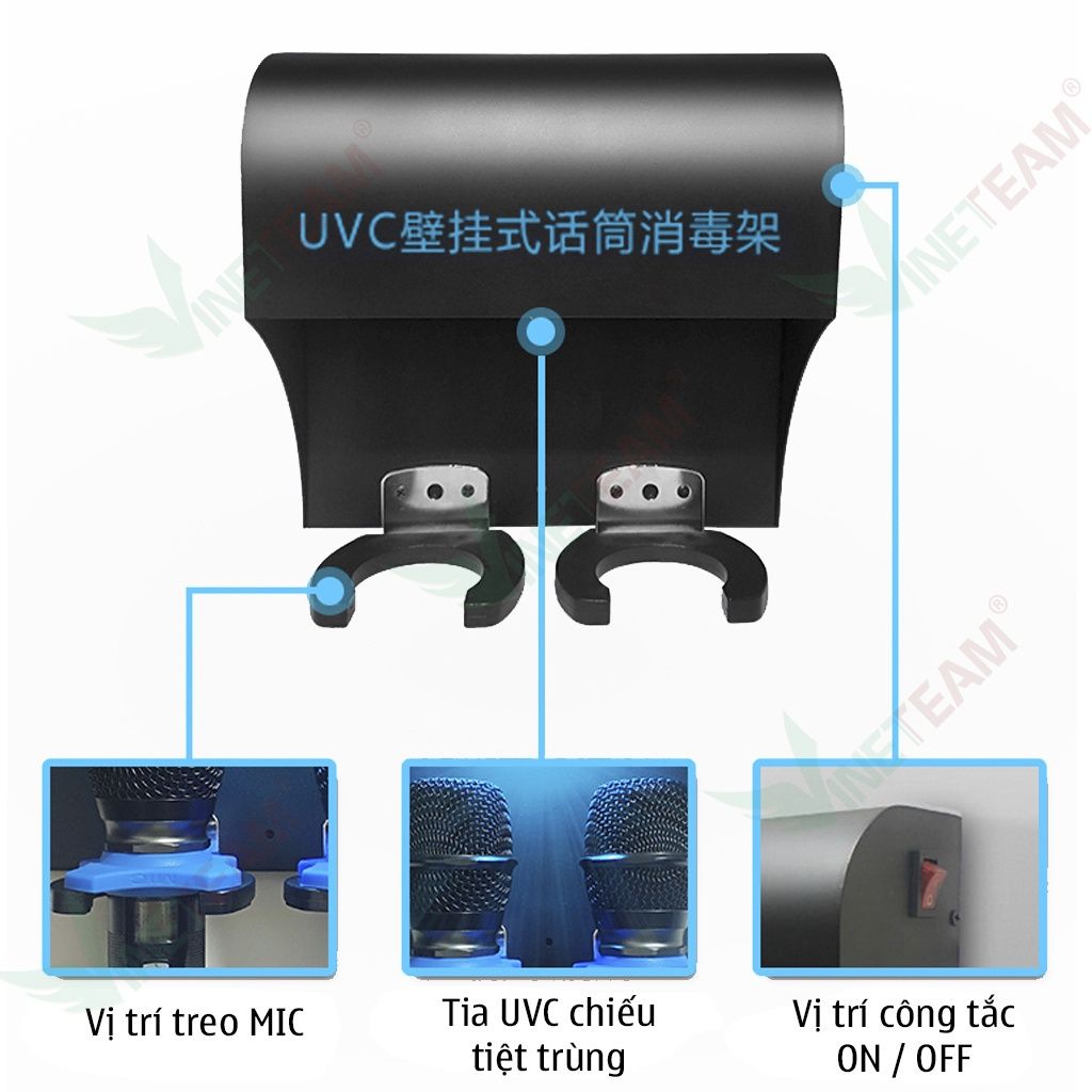 Máy tiệt trùng micrô bằng tia cực tím UVC treo tường kiêm giá đỡ micro karaoke -dc4695