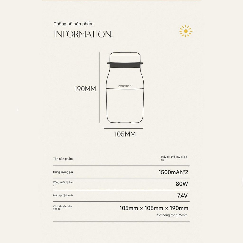 Máy Xay Sinh Tố Cầm Tay - Công Suất Lớn, Dung Tích 1000ml, Chất Liệu An Toàn Tính Năng Nổi Bật: Thiết kế tiện lợi: Máy xay sinh tố cầm tay sạc pin, dễ dàng mang đi du lịch, đi làm, đi chơi. Với dung tích 1000ml và thiết kế nhỏ gọn, máy xay sinh tố này sẽ là người bạn đồng hành lý tưởng cho mọi hoạt động hàng ngày của bạn. Chất liệu cao cấp: Chất liệu nhựa ABS bền chắc, chống va đập và chống xước, cùng với lớp nhựa silicon an toàn, đảm bảo vệ sinh và dễ dàng vệ sinh. An toàn sử dụng: Máy chỉ hoạt động khi cốc được lắp đúng vị trí và có vòng silicone chống tràn giữa thân máy và cốc, giúp máy hoạt động an toàn và hiệu quả. Cách Sử Dụng: Sạc pin tiện lợi: Thiết kế cổng sạc USB với đầu bọc silicon chống nước, bạn có thể sạc máy dễ dàng và an toàn. Lắp ráp và sử dụng: Lắp cốc vào thân máy đúng vị trí, đảm bảo vòng silicone được lắp đúng cách. Nếu đèn báo đỏ, kiểm tra lại cốc, pin hoặc thực phẩm trong cốc. Bắt đầu xay: Khi đèn xanh nhấp nháy, bấm 2 lần liên tiếp để máy bắt đầu hoạt động. Máy xay sinh tố mini không dây cho phép bạn xay nhuyễn các loại hoa quả và nước ép tươi ngon mọi lúc, mọi nơi. Thông Số Kỹ Thuật: Công suất: 80W Điện áp: ≤ 36V Tốc độ tối đa: 18,000 vòng/phút Dung tích: 1000ml (dung tích xay là 500ml) Chất liệu: Nhựa ABS và silicon an toàn Pin tích hợp: Có Danh Sách Đóng Gói: 1 * Thân máy xay 1 * Nắp 1 * Dây thừng 1 * Ống hút 1 * Cáp sạc USB