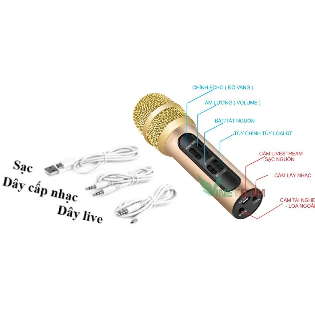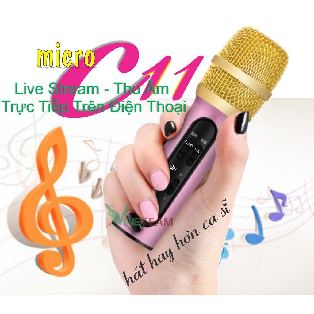 ⚡ GIÁ SỈ ⚡ Micro Live Stream Thu Âm C11, Micro Thu Âm, Hát Live Stream,Karaoke Online, Tặng Tai Nghe Bản TIẾNG ANH CHÍNH SÁCH BẢO HÀNH CỦA SHOP - Hàng mới 100% , Đảm bảo chất lượng. - Bảo hành 3 tháng với lỗi của nhà sản xuất. ======================================= MÔ TẢ SẢN PHẨM MICRO LIVESTREAM C11 ✅Karaoke Trên Điện Thoại. ✅Mic hát cho chất lượng âm thanh tốt. ✅Dùng được trên máy tính và trên di động. ✅Tần số rộng 20Hz – 20kHz. ✅Khả năng lọc âm tốt với 2 lớp kim loại. ✅Kết nối trực tiếp với máy tính qua cổng 3.5mm. ✅Hỗ trợ 2 điện thoại cùng lúc. ✅Sử dụng hát hay thu âm. ✅Dung lượng pin 450 mAhsử dụng liên tục lên 8 tiếng. ✅Micro Mini Karaoke. ======================================= 👉Giới thiệu Micro C11 thu âm live stream loại cao cấp kèm tai phone: - Những lúc mệt, tâm trạng hãy ca 1 bài, cũng đủ làm bạn lấy lại tinh thần. Hay là khi vui, hứng khởi, tại sao không tụ tập hội hát karaoke, âm nhạc luôn gắn kết các mối quan hệ. Với chiếc mic hát thu âm C11 bạn có thể ca hát, livestream mọi nơi bạn muốn. Hãy sở hữu ngay mic thu âm C11 nào. - Micro C11 với màng lọc âm dày, nút điều chỉnh Echo giúp âm thanh thêm trong và trung thực. Khả năng loại bỏ tạp âm xung quanh đồng thời hạn chế âm rè hay bị nhiễu sóng làm ảnh hưởng đến ca khúc mà bạn thể hiện. Đồng thời, kết nối dẫn truyền tín hiệu ổn định trực tiếp từ điện thoại sang micro càng làm âm thanh tốt hơn, hát hay hơn. - Micro Karaoke LiveStream C11 bỏ túi nhỏ gọn, rất tiện lợi mang theo bên mình. Chúng ta chỉ cần mang theo 1 chiếc Micro LiveStream C11 cắm tai nghe vào 1 chiếc điện thoại, máy tính, laptop hoặc iPad là tha hồ livestream mọi lúc mọi nơi hoặc cũng có thể ghi lại những bản thu âm tuyệt vời qua các app karaoke thỏa thích trên mạng và chia sẻ ngay với bạn bè. ======================================= 👉HƯỚNG DẪN SỬ DỤNG: ➡Điều khiển đơn giản với 4 nút gạt nằm ngay trên thân micro C11: ✔on/off ----bật và tắt nguồn ✔1 gạch và 2 gạch ----là chuyển theo hệ điều hành điện thoại androi và ios ✔Echo ----tăng giảm độ vang nhại ✔Vol ----âm lượng micro ✔Phần chuôi mic là cổng kết nới với thiết bị khác ✔Headset ---- lỗ cắm tai nghe ✔Accompanimant ---- lỗ cắm kết nối điện thoại hay các thiết bị mở nhạc ✔Connect the phone ---- lỗ cắm kết nối điện thoại thu âm live stream. ======================================= 👉ĐẶC ĐIỂM NỔI BẬT: - Âm thanh hay vượt trội – hát cực đã. - Hát live stream, hát karaoke trên điện thoại thật dễ dàng. - Khả năng 3 trong 1 Micro thu âm + Micro karaoke + Sound card. - Kích thước nhỏ gọn – Pin khỏe dùng 6-10 giờ. SẢN PHẨM BAO GỒM 1. Micro C11. 2. Dây sạc. 3. Dây lấy nhạc (dây 2 đầu 3.5). 4. Dây live (dây 1 đầu micro USB 1 đầu 3.5). 5. Tai nghe. 6. Bông lọc. 7. Hộp đựng sản phẩm.