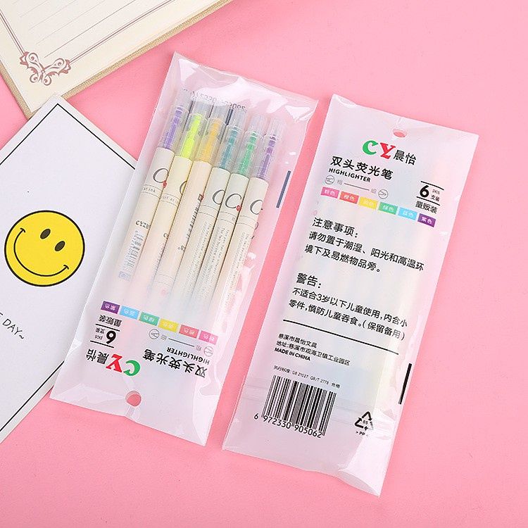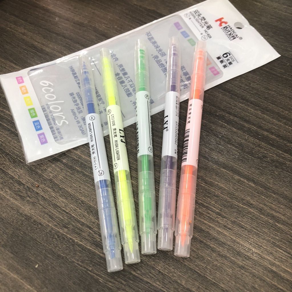 💥 LƯU Ý:SHOP CÓ VỀ HÀNG THEO NHIỀU ĐỢT LÊN VỎ BÊN NGOÀI TÚI CÓ TÊN KHÁC NHƯNG CHẤT LƯỢNG NHƯ NHAU CÁC BẠN LƯU TÂM Ạ =============== 1. Tên sản phẩm: Bút nhớ 2 đầu 2 màu highlight màu Pastel dạ quang đánh dấu ghi chú, trang trí sổ tay 2. Mô tả: - Chất liệu: Nhựa & mực màu highlight. - Ngòi viết: Ngòi cứng vát rìu - Màu sắc: 2 màu/ bút - Trọng lượng: 5g