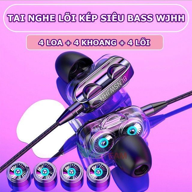 Tai nghe lõi kép SIÊU BASS WJHH-Cam kết 4 Loa Như quảng cáo [MẪU MỚI SIÊU BASS 2024] -dc3810