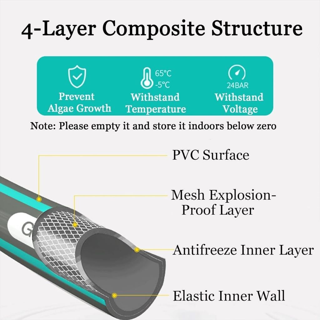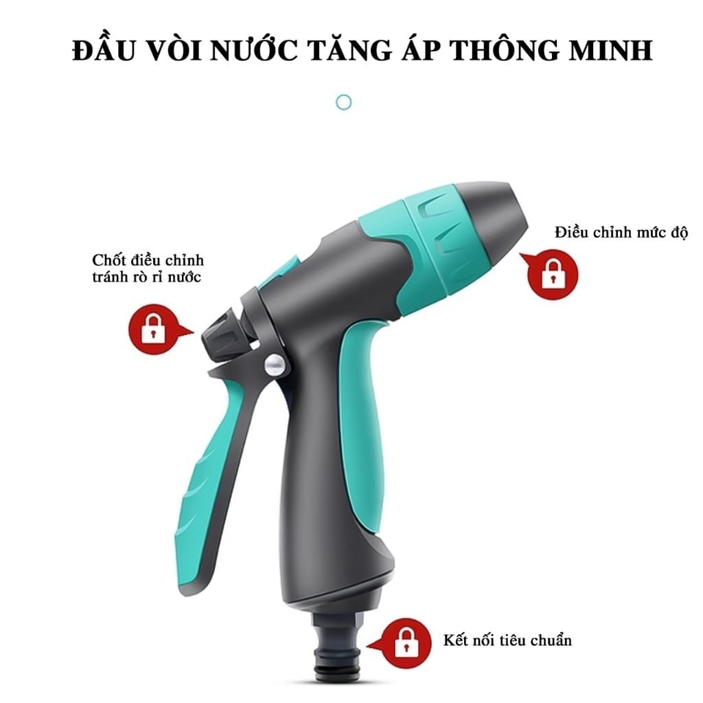 Bộ tưới cây cao cấp SHUOFAN-101F không chỉ dùng để tưới vườn mà còn hỗ trợ bạn trong việc rửa xe và vệ sinh các khu vực bám bụi như cửa sổ, sàn nhà... Dây tưới cây có kết cấu 3 lớp với chiều dài từ 15 đến 25 mét, được làm từ 100% nhựa PVC nguyên chất, chịu được áp lực cao, không gập và không xoắn trong quá trình sử dụng. Dây cũng có khả năng chịu nhiệt tốt, không bị biến dạng khi phơi dưới ánh nắng mặt trời, và có độ bền cao, chống mài mòn và không dễ bị đâm thủng bởi vật nhọn. Sản phẩm được sản xuất từ nguyên liệu nhựa PVC đạt tiêu chuẩn quốc tế ROHS, không gây độc hại, bảo vệ môi trường và an toàn cho sức khỏe người tiêu dùng.