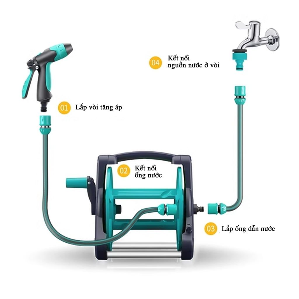 1 khớp nối phi 21 (hoặc 27) làm từ nhựa ABS cao cấp, chắc chắn và không dễ bị tuột, chỉ cần vặn vào đầu răng của nguồn nước là có thể sử dụng ngay. 1 khớp nối nhanh làm từ nhựa ABS và cao su có cổ dê, giúp siết chặt khớp nối với vòi. Bạn chỉ cần nới lỏng cổ dê, gắn vào vòi nước rồi siết lại để sử dụng. 3 khớp nối nối ống. 1 vòi xịt làm từ nhựa ABS, với 3 hoặc 5 chế độ phun (tùy chọn). Bạn chỉ cần xoay đầu vòi để chọn chế độ phun phù hợp cho từng mục đích sử dụng như tưới cây, rửa xe. Ống SHUOFAN-101F có kết cấu 3 lớp, đường kính trong 12.5mm, đường kính ngoài 17mm, cùng với 1.5 mét ống cấp nước nguồn trong rulo.